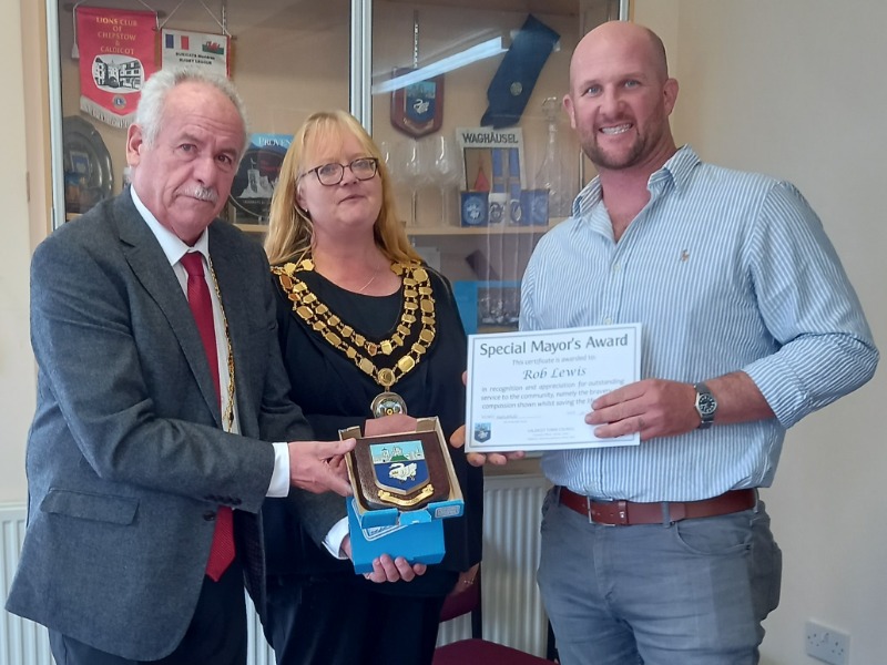 The Mayor, Cllr M Mitchell, presents a donation to Mr G Breen of Caldicot Youth Group