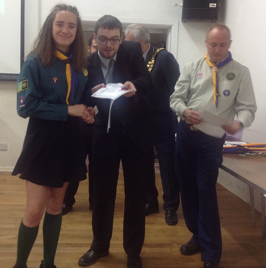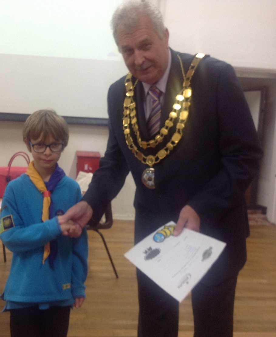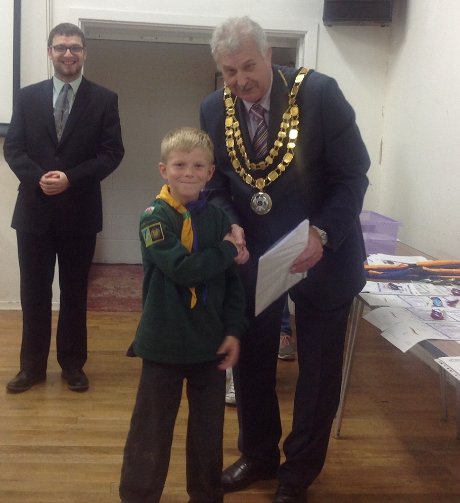The Mayor, Cllr P Stevens presenting the Mayors Cup to Mark Lane, 2nd Caldicot Scouts.