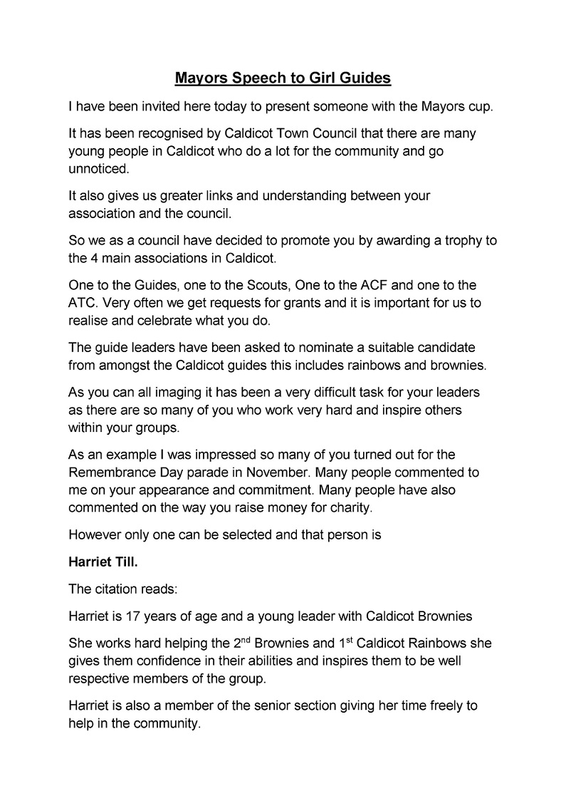 Speech delivered by the mayor