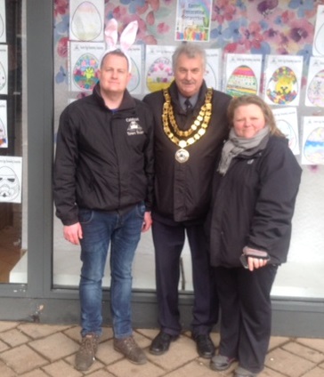 Many people with their children turned out with the aim of collecting a letter written on a rock in each shop. They then had to use the letters to write a phrase on a competition form. This was an excellent opportunity to get people to at least look into our local shops. Over 40 children in three categories entered the Easter egg colouring competition. The Mayor Cllr P.Stevens was invited to judge the competition. The winner of each category won a comprehensive art set. Many of the people spoken to enjoyed the days event and said that it was an excellent way of promoting Caldicot."