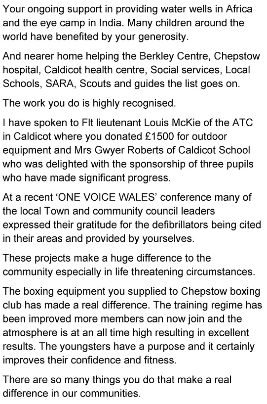 attended a meeting of the Caldicot branch of the British Leigion. Peter Wilson