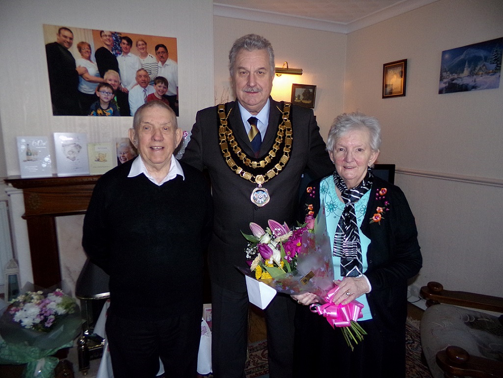 Mayor, Cllr Philip Stevens, presented a bouquet of flowers to Mr & Mrs Patterson in celebration of their 60th Wedding Anniversary.